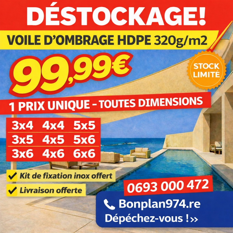 VOILE D’OMBRAGE HDPE 320g/m2 AVEC COUTURE RENFORCE
