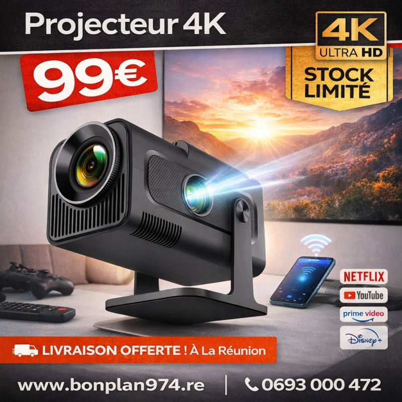 Offrez-vous une qualité d’image exceptionnelle avec ce projecteur 4K compact au design moderne et élégant. Conçu pour s’adapter à tous les environnements, il combine puissance, praticité et performance pour transformer chaque mur en véritable écran de cinéma.