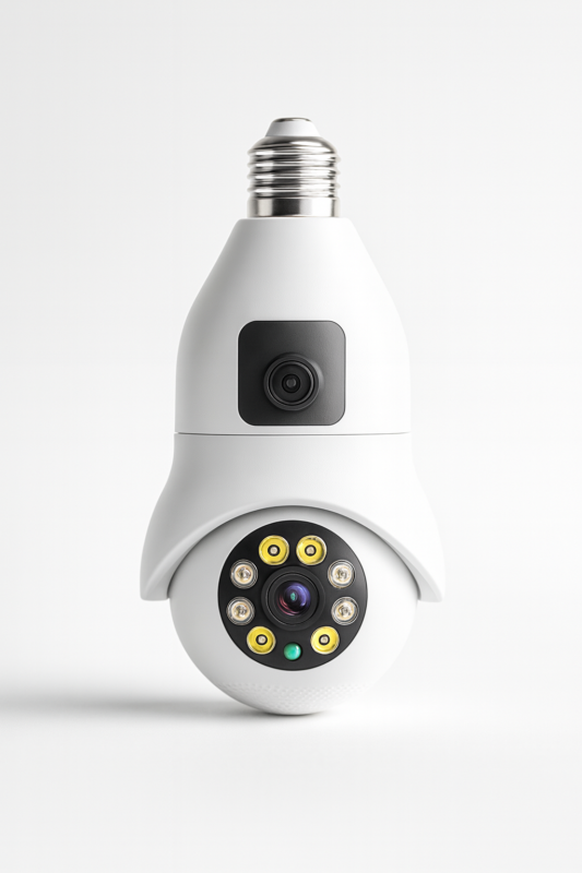 Cette caméra ampoule 360° offre une solution de surveillance discrète, moderne et ultra-pratique. Conçue pour se visser directement dans une douille standard E27, elle ne nécessite aucun câble, aucune perceuse ni installation complexe. Une fois connectée en WiFi à votre smartphone, vous pouvez surveiller votre intérieur ou extérieur en temps réel, où que vous soyez.