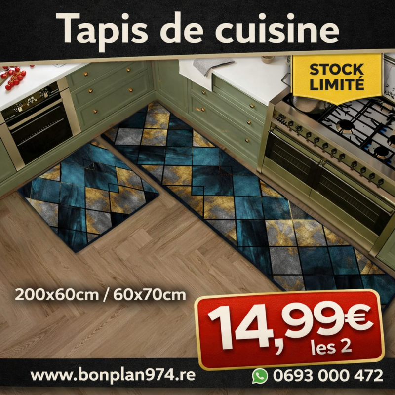 Sublimez votre cuisine avec ce set de 2 tapis waterproof au design tendance, spécialement pensés pour offrir confort, praticité et protection au quotidien. Antidérapants et faciles à nettoyer, ils apportent une touche décorative moderne tout en rendant votre espace plus agréable et plus sécurisé.