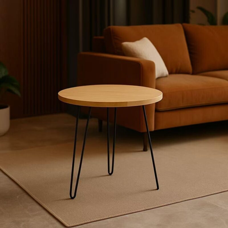 Table d’appoint moderne au design épuré, composée d’un plateau en Bambou et de pieds métalliques fins. Parfaite pour apporter une touche chaleureuse et élégante à votre salon.