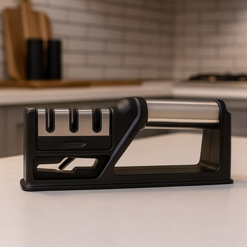Aiguiseur de Couteau en 3 étapes pour un tranchant parfait en quelques secondes. Redonnez une nouvelle vie à tous vos couteaux grâce à cet aiguiseur professionnel 3en1, conçu pour affûter, affiner et polir en un seul geste. Son design ergonomique, sa base antidérapante et sa prise en main stable garantissent un affûtage rapide et sécurisé. Idéal pour la cuisine du quotidien comme pour les amateurs de cuisine exigeants.