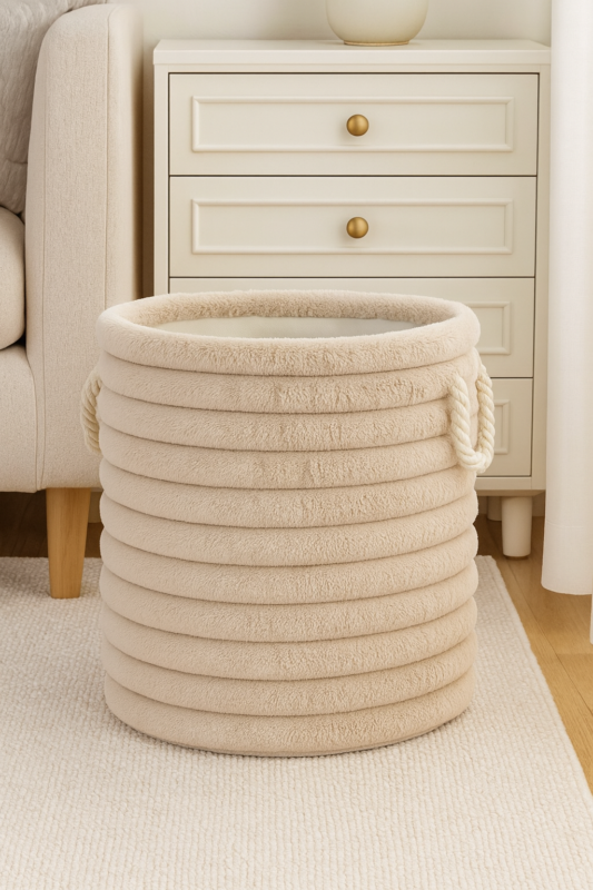 Panier de Rangement doux, épuré et élégant. Le Must-Have pour une maison organisée et confortable. Apportez une touche de douceur à votre intérieur avec ce panier de rangement ultra moelleux, idéal pour les chambres, salons ou espaces enfants. Sa texture douce, son design côtelé moderne et ses poignées épaisses en corde en font un accessoire aussi pratique que décoratif. Parfait pour ranger plaids, jouets, linge ou accessoires du quotidien, il allie style, capacité et confort visuel pour une maison acceuillante, moderne et épurée. Dimension: 35*40cm