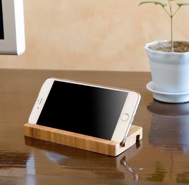 Apportez une touche de nature à votre espace avec ce repose téléphone en bambou au design épuré.