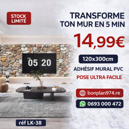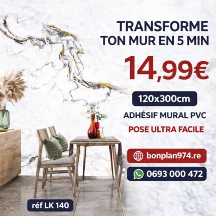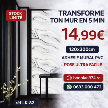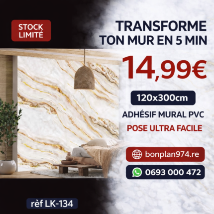 Papier peint PVC autocollant effet marbre haut de gamme (120×300 cm). Pose ultra facile en 5 minutes, sans colle ni outils. Résistant, épais et parfait pour donner un style moderne et élégant à votre salon, chambre ou bureau.