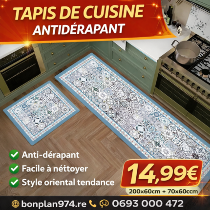 Sublimez votre cuisine avec ce set de 2 tapis waterproof au design tendance, spécialement pensés pour offrir confort, praticité et protection au quotidien. Antidérapants et faciles à nettoyer, ils apportent une touche décorative moderne tout en rendant votre espace plus agréable et plus sécurisé.