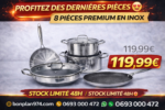 Batterie de cuisine inox Triply Premium composées de 9 pièces.