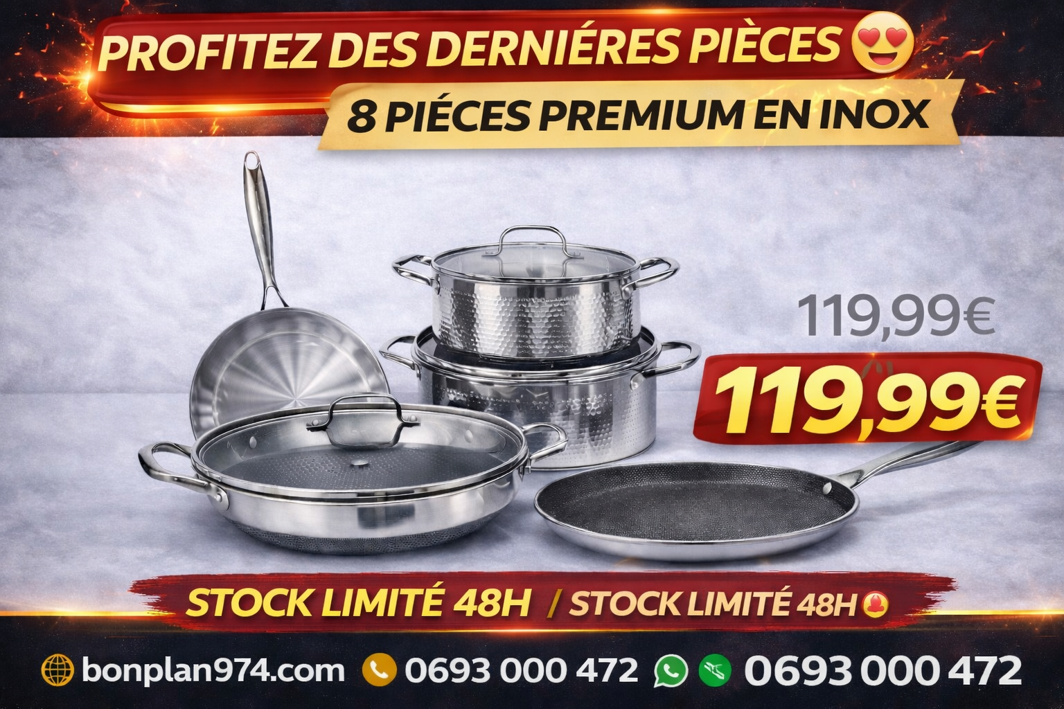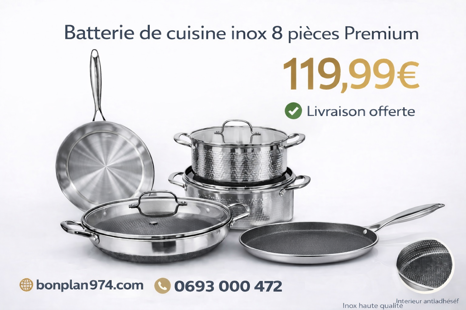 Cuisinez comme un professionnel avec cette batterie de cuisine en inox Triply haute qualité. Conçue pour une répartition parfaite de la chaleur, elle garantit une cuisson homogène et durable pour toutes vos préparations.