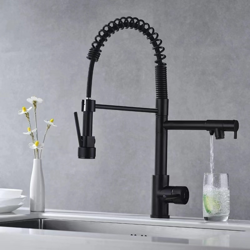 Ce robinet allie design moderne et performance professionnelle. Sa silhouette élancée est dominée par un ressort apparent en spirale, inspiré des cuisines de chefs, qui lui confère à la fois robustesse et flexibilité.