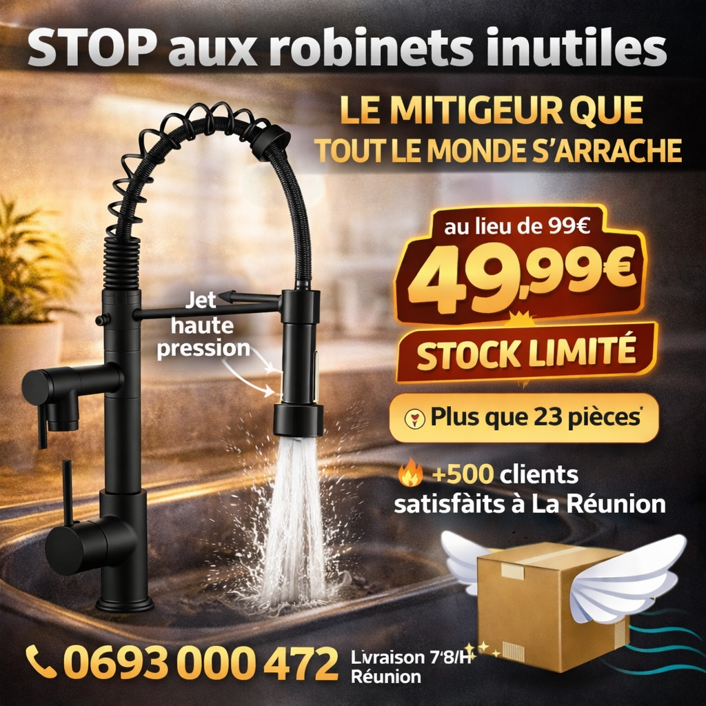 Doté d’une douchette extractible, il permet de passer facilement d’un jet puissant à un jet plus doux, idéal pour rincer les aliments, nettoyer l’évier ou remplir des récipients avec précision. Son bec pivotant offre une grande liberté de mouvement, rendant chaque geste fluide et pratique au quotidien.