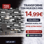 Papier peint PVC autocollant effet pierre haut de gamme (120×300 cm). Pose ultra facile en 5 minutes, sans colle ni outils. Résistant, épais et parfait pour donner un style moderne et élégant à votre salon, chambre ou bureau.