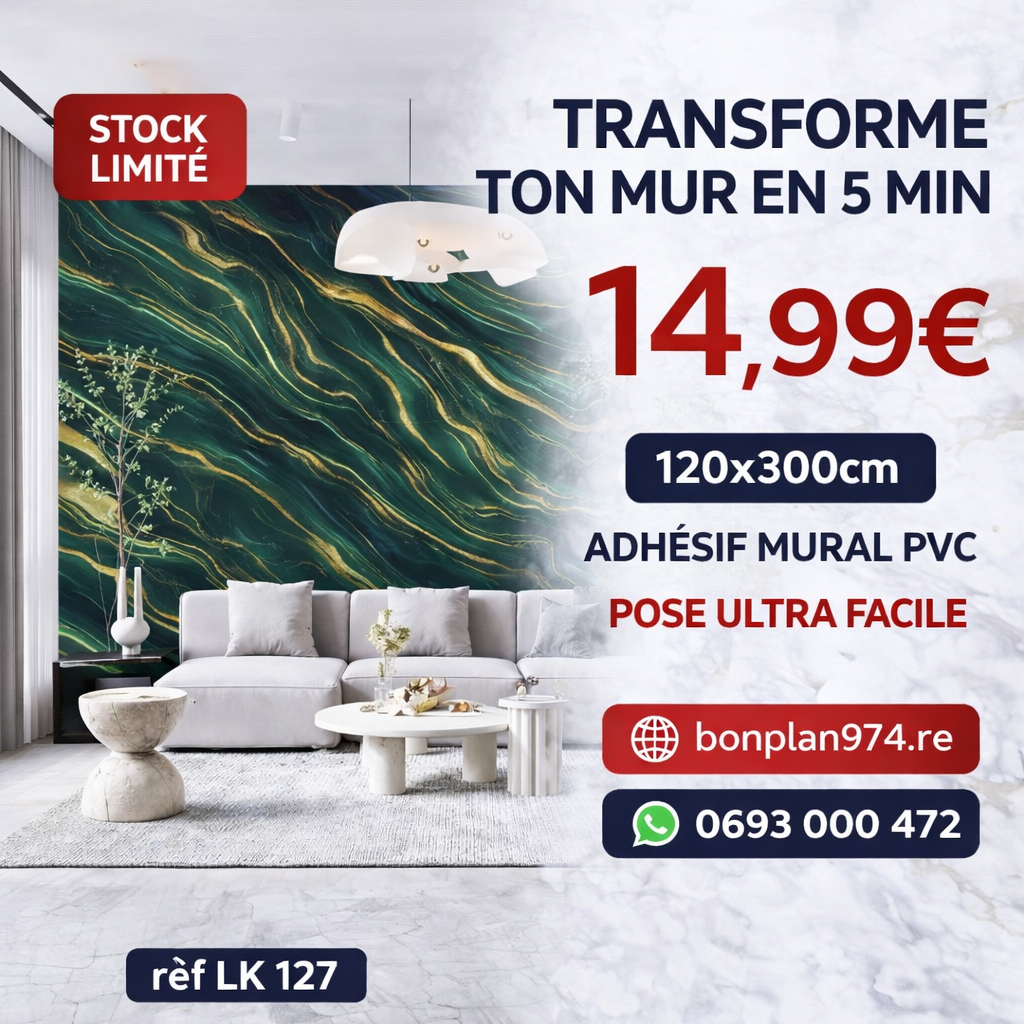 Papier peint PVC autocollant effet marbre haut de gamme (120×300 cm). Pose ultra facile en 5 minutes, sans colle ni outils. Résistant, épais et parfait pour donner un style moderne et élégant à votre salon, chambre ou bureau.