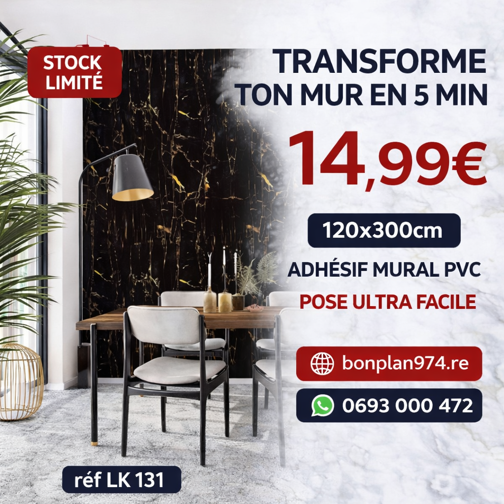 Papier peint PVC autocollant effet marbre haut de gamme (120×300 cm). Pose ultra facile en 5 minutes, sans colle ni outils. Résistant, épais et parfait pour donner un style moderne et élégant à votre salon, chambre ou bureau.