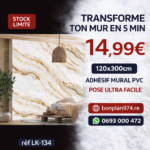 Papier peint PVC autocollant effet marbre haut de gamme (120×300 cm). Pose ultra facile en 5 minutes, sans colle ni outils. Résistant, épais et parfait pour donner un style moderne et élégant à votre salon, chambre ou bureau.