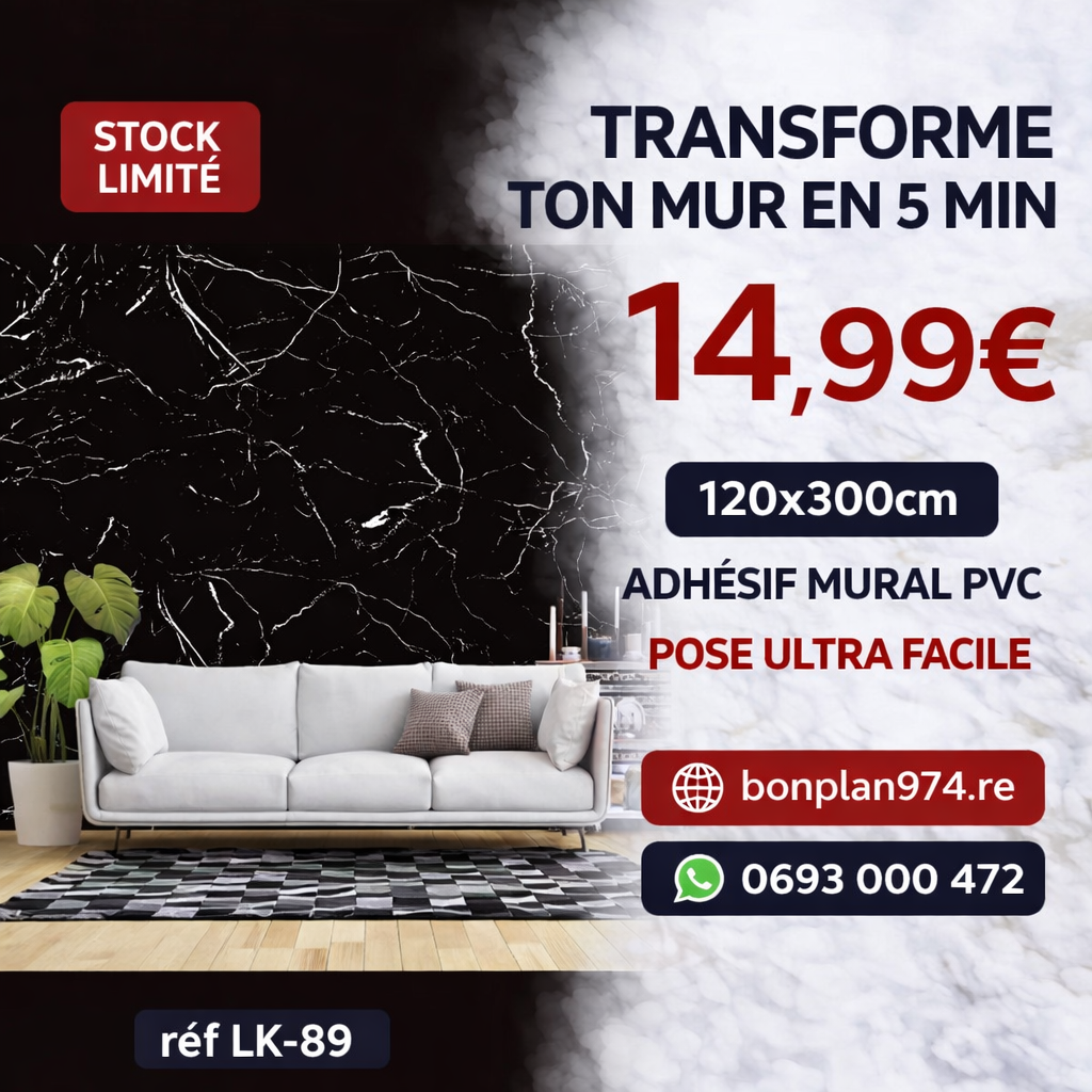 Papier peint PVC autocollant effet marbre haut de gamme (120×300 cm). Pose ultra facile en 5 minutes, sans colle ni outils. Résistant, épais et parfait pour donner un style moderne et élégant à votre salon, chambre ou bureau.