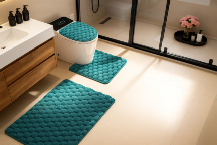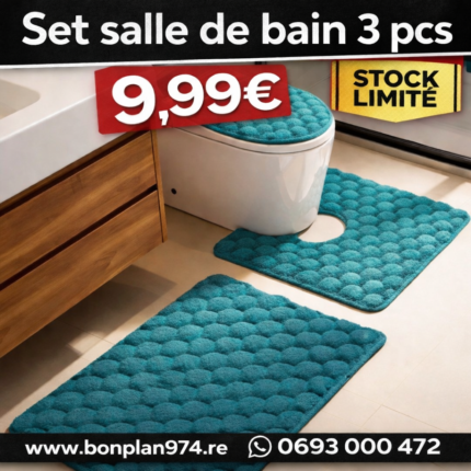 Set de Salle de Bain composé de 2 tapis et 1 housse WC.
