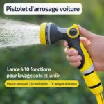 Facilitez vos tâches de nettoyage et d’arrosage avec ce pistolet d’arrosage 10 fonctions. Idéal pour laver la voiture, arroser le jardin, nettoyer la terrasse ou les plantes.