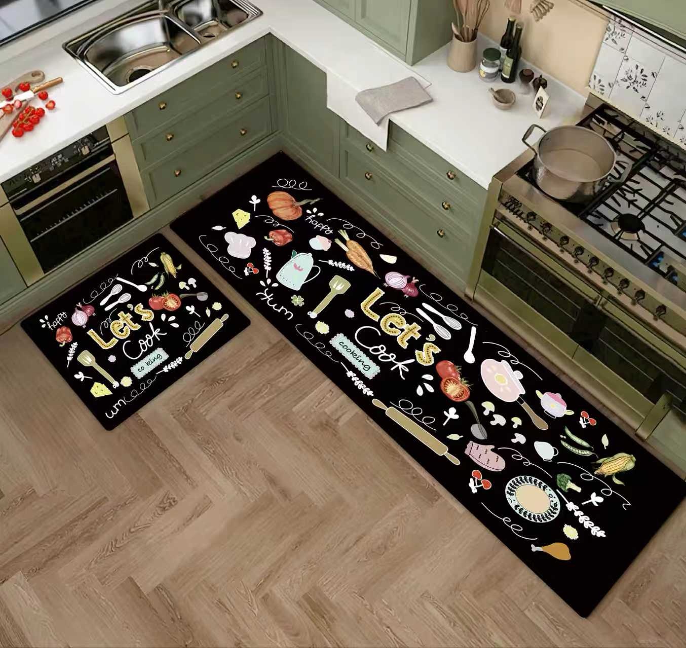 Set de 2 tapis waterproof tendance et pratiques pour une cuisine plus belle, plus propre, plus confortable.
