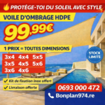 Cette voile d’ombrage en HDPE 320 gr/m² est idéale pour offrir une protection solaire efficace et durable.